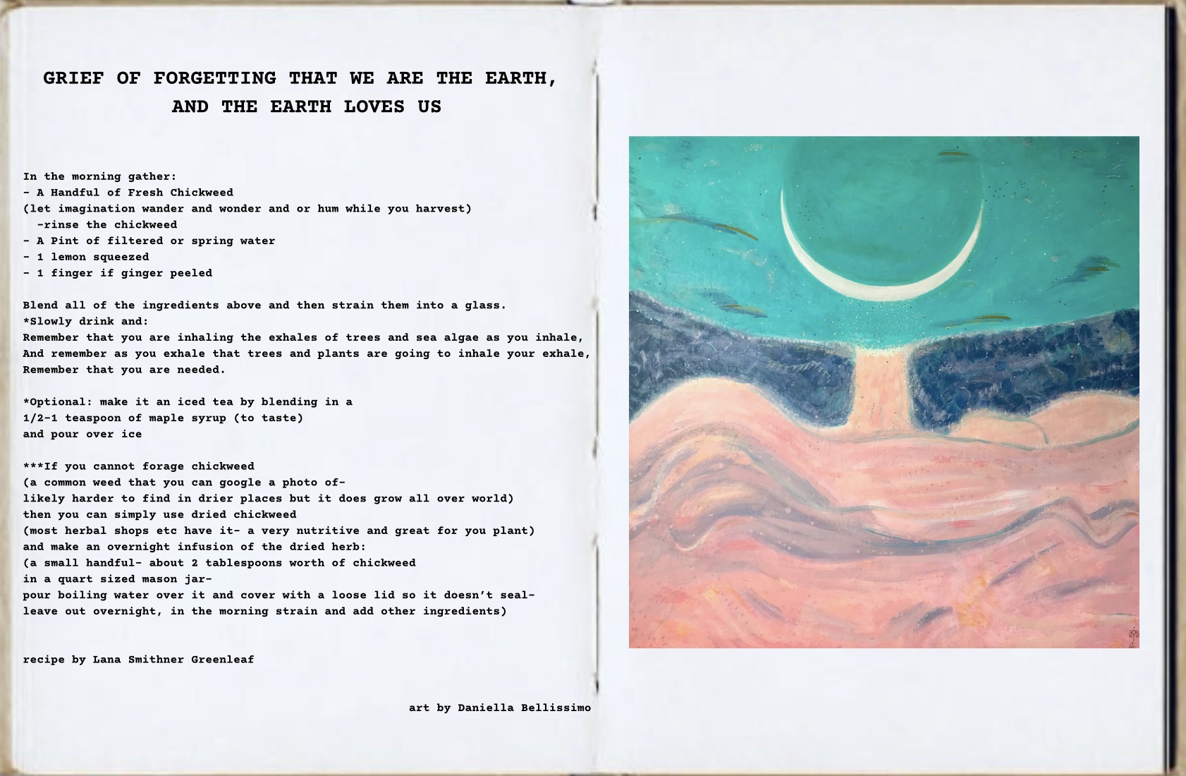 So that the reader can digest a personal or collective grief while sipping one of the elixir recipes, and take in the work of an artist who has needed to do the same thing.